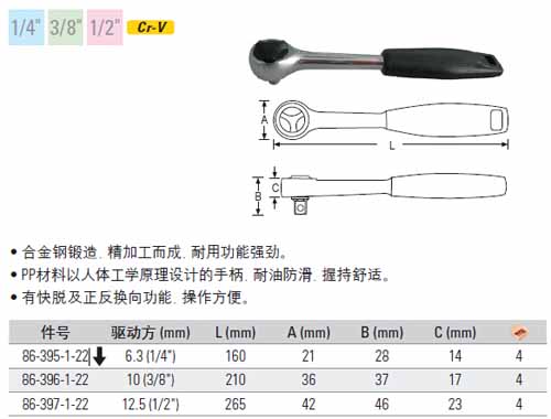 | 1A0448 | 86-397-1-22 | 驱动方:1/2寸,长度:265mm | 把 | ¥133.00元 | 1-3天 |