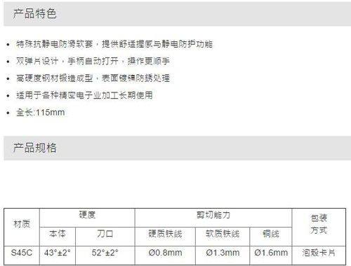 > 全部产品分类 > 五金工具 > 手动工具 > 电力/电子专用 > 防静电 > 4.5寸防静电灰镍防滑软套斜口钳