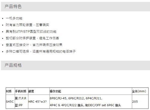 | 1A3311 | UCP-376KX | 4P/6P/8P专用网络压接钳 | 把 | ¥115.00元 | 7-15天 |