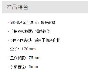 > 全部产品分类 > 五金工具 > 手动工具 > 电力/电子专用 > 电子工具组套 > 5件套精密锉刀组套
