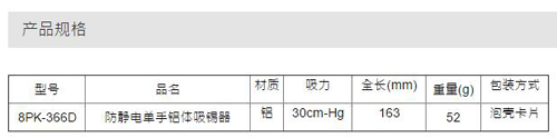 > 全部产品分类 > 五金工具 > 手动工具 > 电力/电子专用 > 防静电 > 8PK-366D防静电单手铝体吸锡器