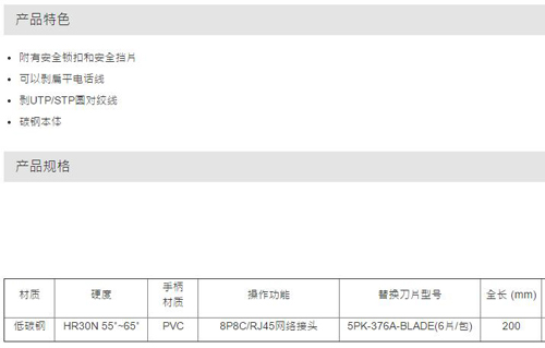 > 全部产品分类 > 五金工具 > 手动工具 > 通用钳类 > 压接钳 > 8P网络线压接钳(带安全锁扣)