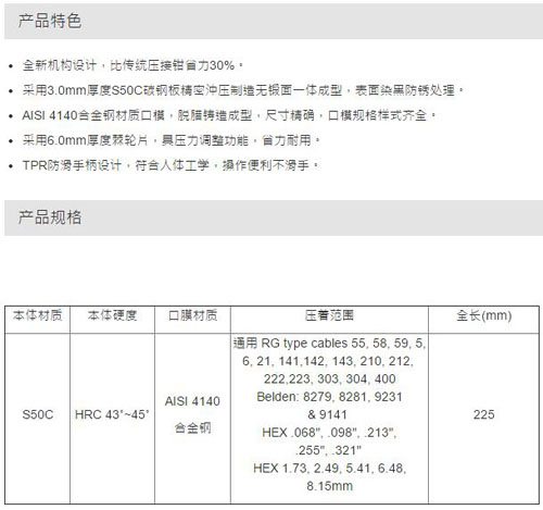 > 全部产品分类 > 五金工具 > 手动工具 > 通用钳类 > 压接钳 > BNC接头端子棘轮压接钳