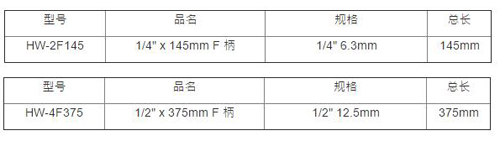 | 1A3088 | HW-2F145 | 1/4寸 x145mm F柄 | 个 | ¥40.00元 | 7-15天 | |
