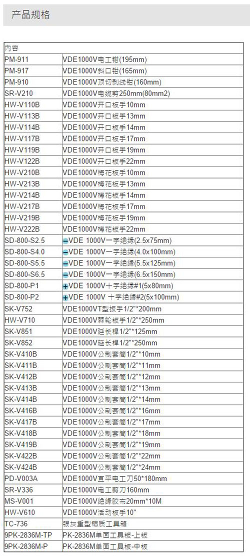 | 1A3764 | PK-2836M | 包含:钳子、活动扳手、螺丝刀等 | 套 | ¥4888.00元 | 7-15天 |