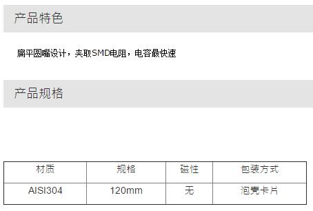 > 全部产品分类 > 五金工具 > 手动工具 > 电力/电子专用 > 镊子 > 不锈钢防磁扁平嘴镊子