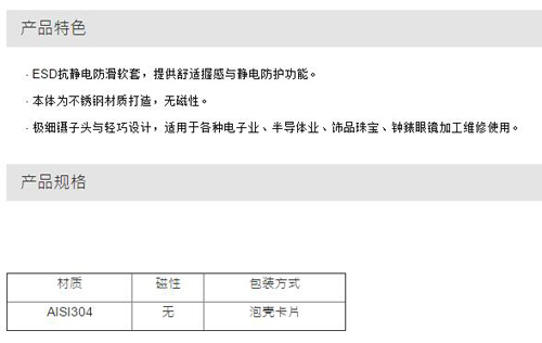 > 全部产品分类 > 五金工具 > 手动工具 > 电力/电子专用 > 防静电 > 防静电防滑软套顺尖镊子