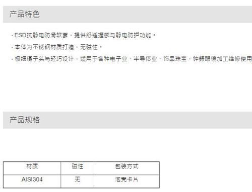 > 全部产品分类 > 五金工具 > 手动工具 > 电力/电子专用 > 防静电 > 防静电防滑软套弯尖镊子