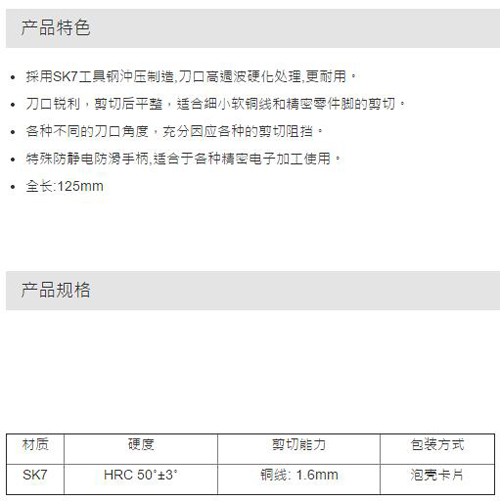 > 全部产品分类 > 五金工具 > 手动工具 > 电力/电子专用 > 防静电 > 防静电如意特高角斜口钳