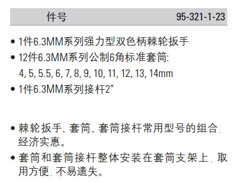 > 全部产品分类 > 五金工具 > 手动工具 > 扳手/套筒/扭矩扳手 > 套筒组套 > 14件6.3MM系列套筒组套