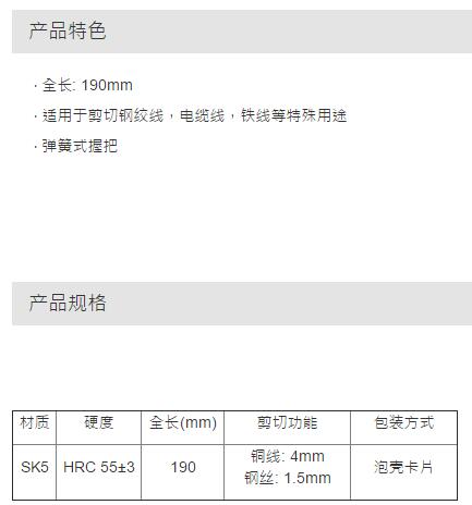 > 全部产品分类 > 五金工具 > 手动工具 > 电力/电子专用 > 电缆剪 > 钢缆钳