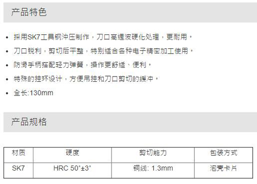 > 全部产品分类 > 五金工具 > 手动工具 > 电力/电子专用 > 电子钳 > 挂环如意薄刀斜口钳