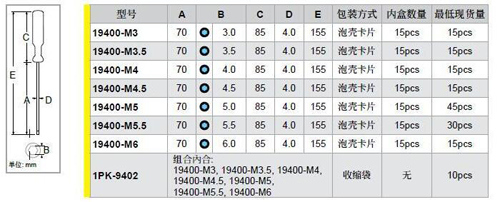 | 1A3221 | 19400-M3.5 | 3.5x70mm | 把 | ¥16.70元 | 7-15天 | |