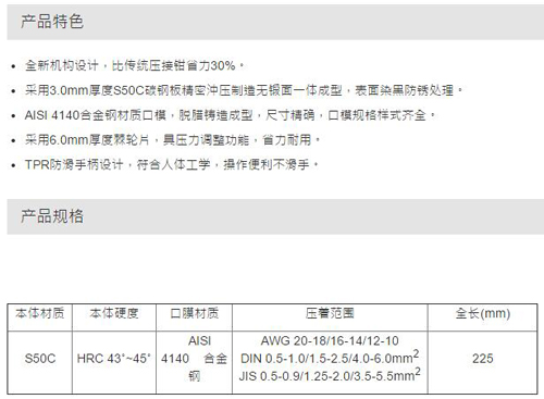 > 全部产品分类 > 五金工具 > 手动工具 > 通用钳类 > 压接钳 > 接续裸端子棘轮压接钳