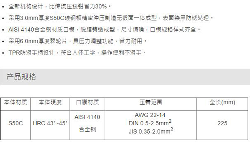 > 全部产品分类 > 五金工具 > 手动工具 > 通用钳类 > 压接钳 > 裸接续端子棘轮压接钳