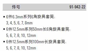 | 1A1436 | 91-942-22 | 6.3mm系列花形批头套筒/12.5mm系列花形批头套筒 | 把 | ¥546.40元 | 7-15天 |