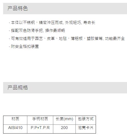 > 全部产品分类 > 五金工具 > 手动工具 > 锯/锉/剪/切 > 剪 > 双色不锈钢快利剪(橙色)