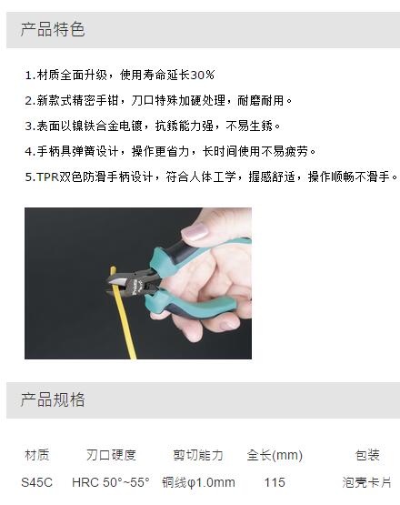 > 全部产品分类 > 五金工具 > 手动工具 > 电力/电子专用 > 电子钳 > 双色精密斜口钳