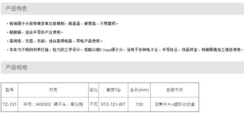 > 全部产品分类 > 五金工具 > 手动工具 > 电力/电子专用 > 镊子 > 陶磁特尖镊子