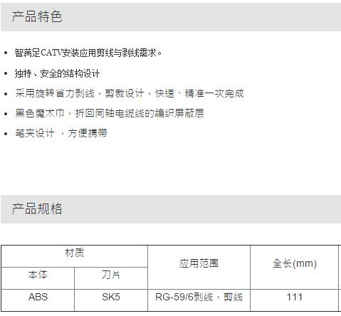 > 全部产品分类 > 五金工具 > 手动工具 > 通用钳类 > 剥线工具 > 同轴电缆剥线器