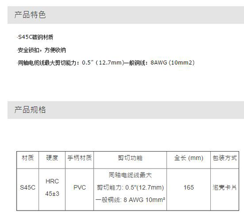 > 全部产品分类 > 五金工具 > 手动工具 > 电力/电子专用 > 电缆剪 > 同轴电缆剪线钳(绿柄)