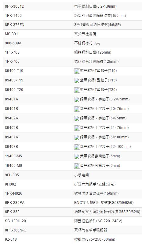 | 1A2902 | 1PK-818B-1 | 包含:剪刀、螺丝批、钳子等 | 套 | ¥1180.00元 | 7-15天 |
