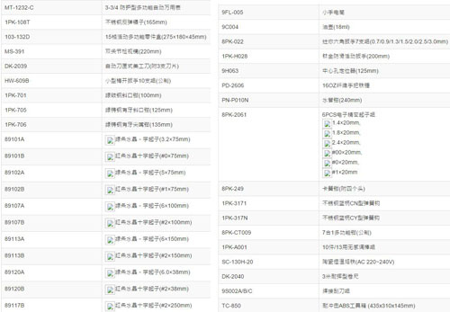 | 1A2937 | 1PK-850B-1 | 包含:锤子、螺丝刀、钳子等 | 套 | ¥2080.00元 | 7-15天 |