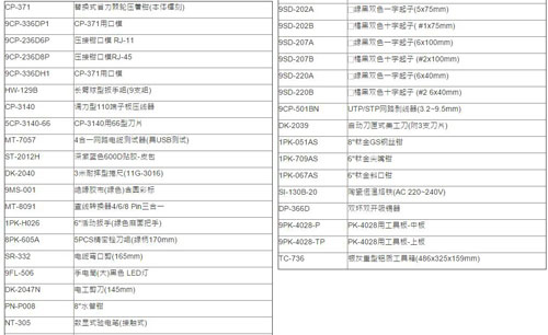 > 全部产品分类 > 五金工具 > 组套工具 > 综合性套装工具 > 专业影音网络电信布线工具组套