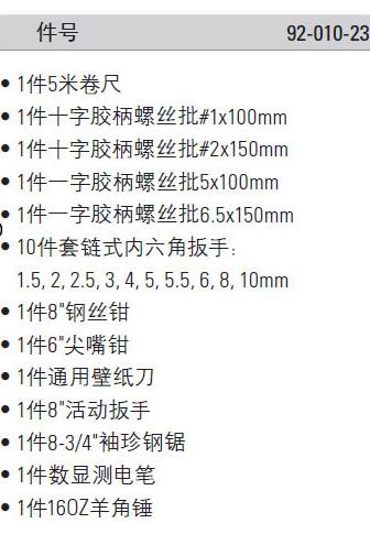 | 1A0046 | 92-010-23C | 即将上市,暂无货 锤/钳子/螺丝刀/卷尺等 | 套 | ¥521.10元 | 15-60天 |