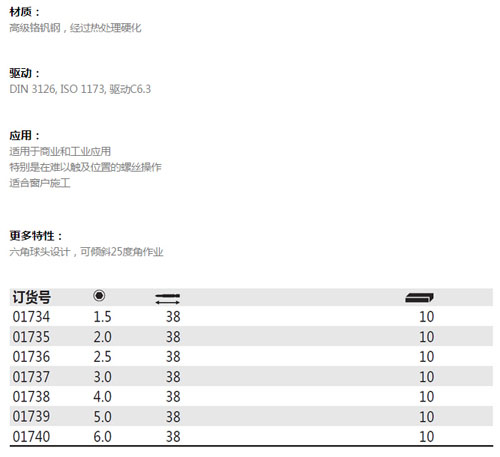 > 全部产品分类 > 五金工具 > 动力工具附件 > 批头 > 38MM球头内六角标准批头 C6.3