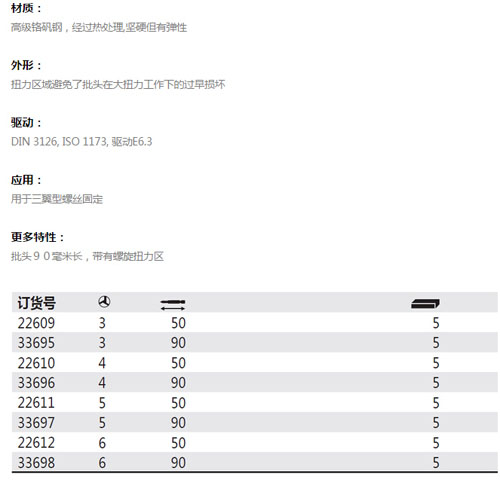 > 全部产品分类 > 五金工具 > 动力工具附件 > 批头 > 50MM高扭矩三翼形批头 E6.3
