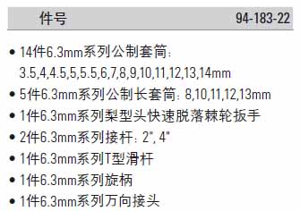 | 1A1434 | 94-183-22 | 套筒/接杆/旋具头/万向接头等 | 把 | ¥341.50元 | 1-3天 |