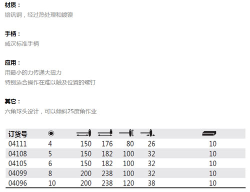 > 全部产品分类 > 五金工具 > 手动工具 > 螺丝刀/内六角 > 内六角 > T型手柄球头内六角扳手系列