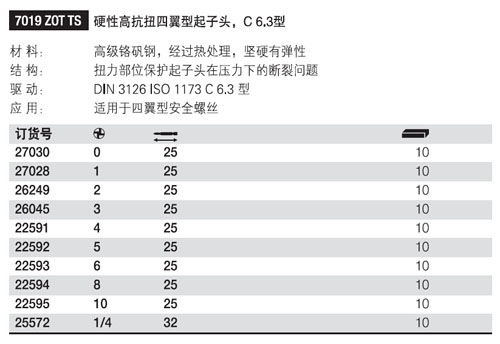 > 全部产品分类 > 五金工具 > 动力工具附件 > 批头 > 高扭矩四翼形批头 C6.3