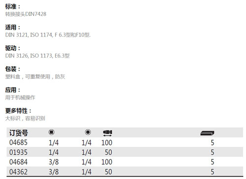 > 全部产品分类 > 五金工具 > 动力工具附件 > 批头 > 工具轴, E6.3 型.