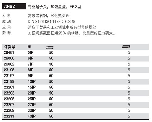> 全部产品分类 > 五金工具 > 动力工具附件 > 批头 > 加强星形标准批头 E6.3