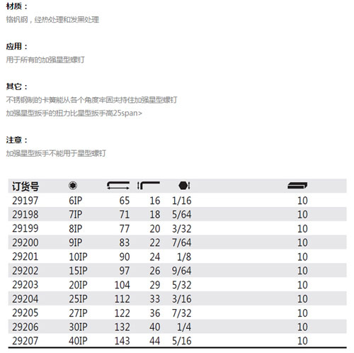 > 全部产品分类 > 五金工具 > 手动工具 > 螺丝刀/内六角 > 内六角 > 加强星形内六角扳手系列