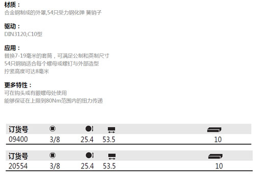 > 全部产品分类 > 五金工具 > 手动工具 > 扳手/套筒/扭矩扳手 > 套筒 > 夹紧螺母套筒
