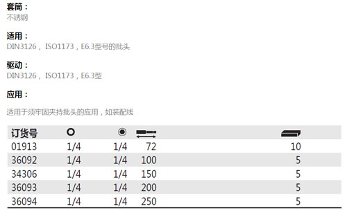 > 全部产品分类 > 五金工具 > 动力工具附件 > 批头 > 接杆批头,带磁性和扣环,E6.3 型