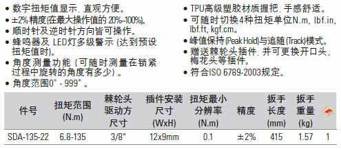 | 1A0483 | SDA-135-22 | 扭矩范围:6.8-135N.m | 把 | ¥4515.50元 | 1-3天 |