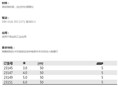 > 全部产品分类 > 五金工具 > 动力工具附件 > 批头 > 内六角标准批头 E6.3