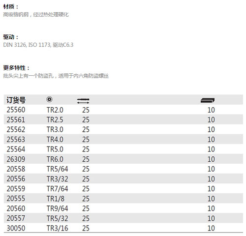 > 全部产品分类 > 五金工具 > 动力工具附件 > 批头 > 内六角带孔标准批头 C6.3