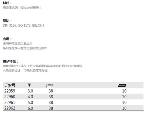 > 全部产品分类 > 五金工具 > 动力工具附件 > 批头 > 球头内六角标准批头 C6.3