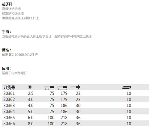> 全部产品分类 > 五金工具 > 手动工具 > 电力/电子专用 > 绝缘工具 > 双色软柄绝缘内六角扳手系列