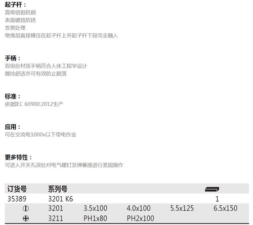 > 全部产品分类 > 五金工具 > 手动工具 > 电力/电子专用 > 绝缘工具组套 > 双色软柄绝缘一字/十字螺丝批6件套装,细颈