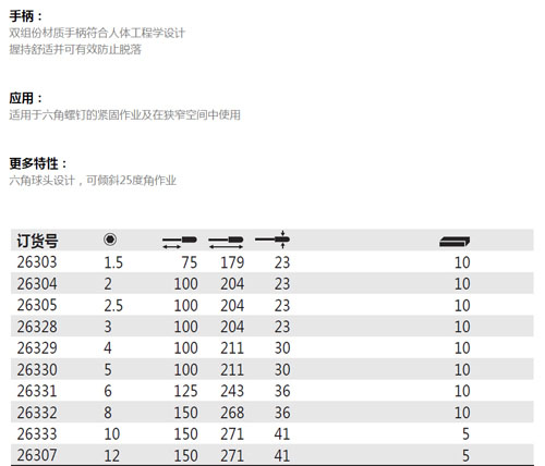 | 1A4480 | 26333 | 367SF系列 球头内六角 10.0x150mm | 把 | ¥174.00元 | 7-60天 | |