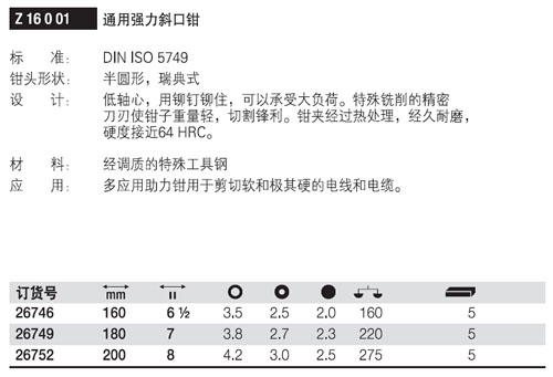 | 1A5159 | 26749 | Z 16 0 180 01系列 180mm | 把 | ¥269.00元 | 7-60天 | |