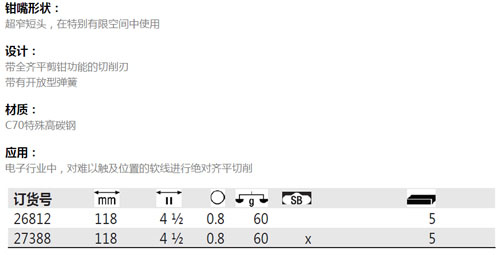 > 全部产品分类 > 五金工具 > 手动工具 > 电力/电子专用 > 电子钳 > 微电子斜口钳