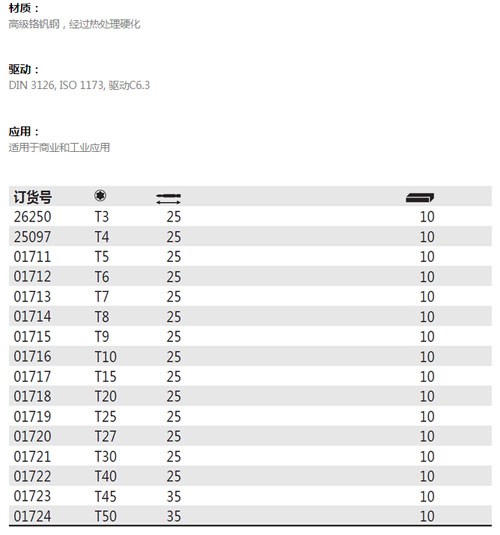 > 全部产品分类 > 五金工具 > 动力工具附件 > 批头 > 星形标准批头 C6.3