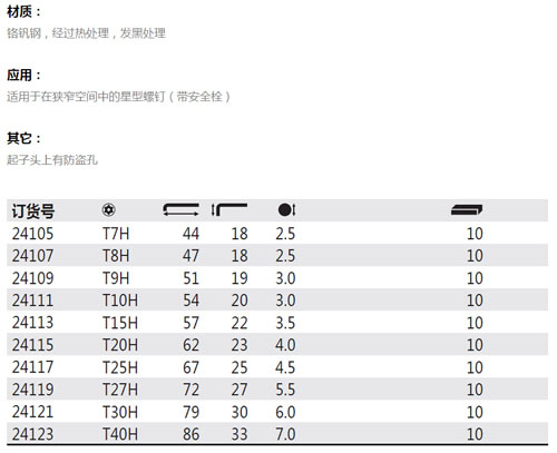 > 全部产品分类 > 五金工具 > 手动工具 > 螺丝刀/内六角 > 内六角 > 星形带孔内六角扳手系列,短